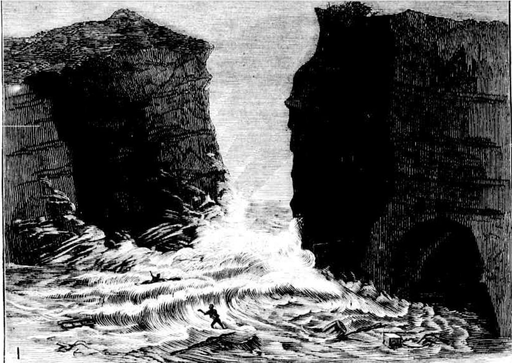 High cliffs loomed out of the inky darkness on the starboard side, and then they were caught in breaking surf. Dalgarno lost all control of the ship. She ran aground broadside on a rocky shore. Huge waves crashed over the deck. There was no time to get the lifeboat over the side, for the Invercauld almost immediately broke apart under the pounding. The men ditched their boots and heavy oilskins as the ship came apart under their feet. Twenty-five men were swept into the turbulent sea to be washed ashore in a small cove backed by towering cliffs. Only 19 men survived the sinking, and all were battered and bruised from being bashed against rocks and wreckage.
