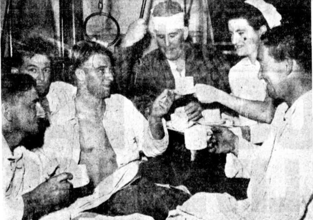 Matthew Morris led choruses of “Roll out the Barrel,” “Waltzing Matilda,” and other wartime favourites to keep people from thinking about their plight. Sister Savage tended to the wounded with what little she had on hand, never complaining of her own injuries. She kept her broken ribs to herself until after they had all been rescued.