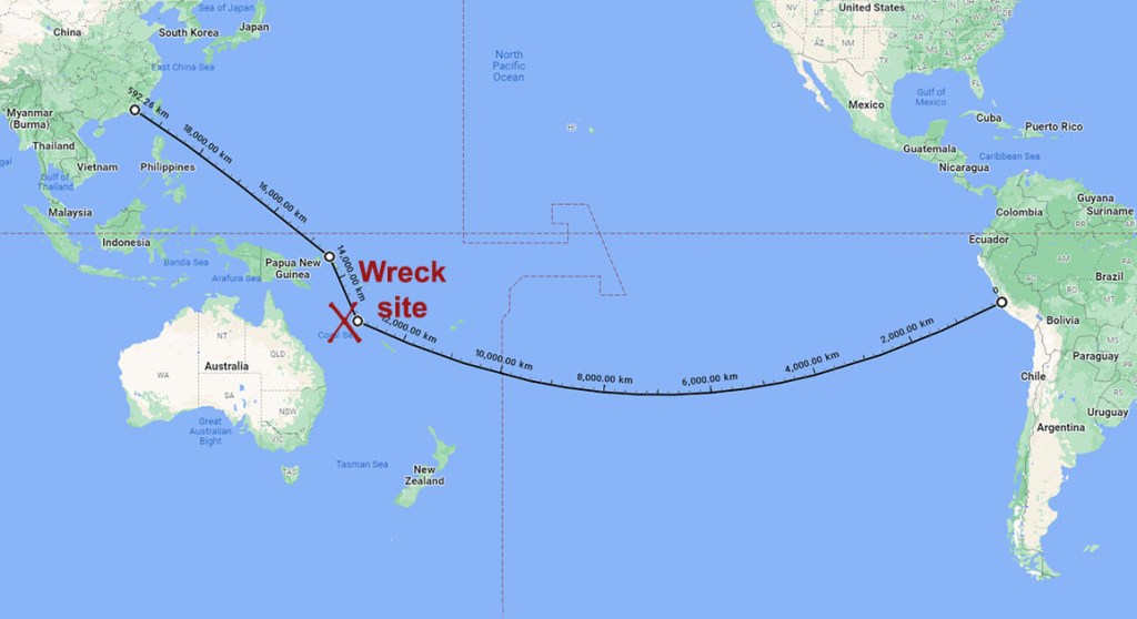 Swallow heeded the warning, hoping to resupply somewhere more friendly, but as the sun dipped towards the horizon, the wind dropped and the ship was becalmed. The Japanese coastal battery opened fire as they warned they would, and one of the cannonballs struck the vessel on the waterline. But before any more damage could be inflicted, a breeze sprang up, and Swallow wasted no time getting the ship underway. They followed the Ryukyu Island chain south before crossing the East China Sea, all the time taking on water.