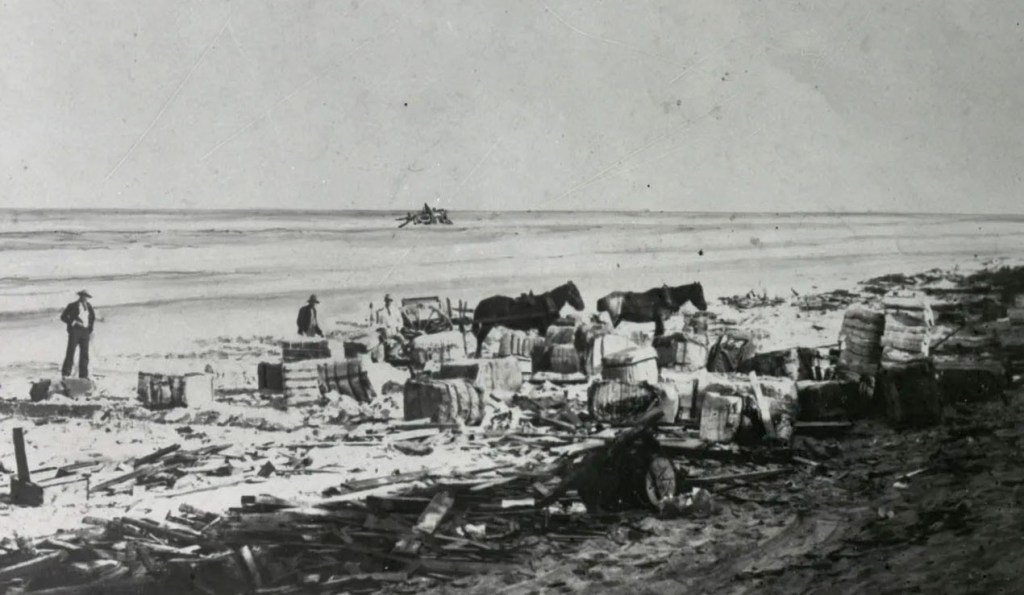 Several people clung to wool bales as they floated free, but they were soon left floundering in the tumultuous seas when the sodden bales sank. As a portion of the paddle box broke away, Captain Cape and several others found refuge on it. They held on for dear life and were swept towards Moreton Island, where the paddle box was smashed to pieces in the surf.